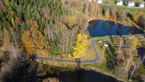 Neméně náročná byla i část cyklostezky mimo zástavbu, kde se stavbaři museli popasovat s omezeným přístupem. „Odtěžený materiál jsme z louky a lesa sváželi malými nakladači na deponie, odkud jej teprve odvážela velká nákladní auta. A zrovna tak to bylo s navážením konstrukčních vrstev ze štěrkodrti. Ve výsledku nám to výrazně prodlužilo dobu realizace, ale jiná možnost nebyla,“ konstatuje hlavní stavbyvedoucí. Část cyklostezky v extravilánu má válcovaný šotolinový povrch.
