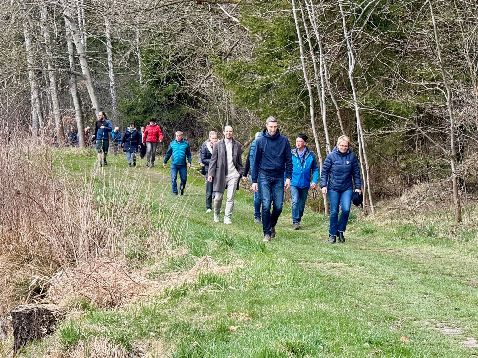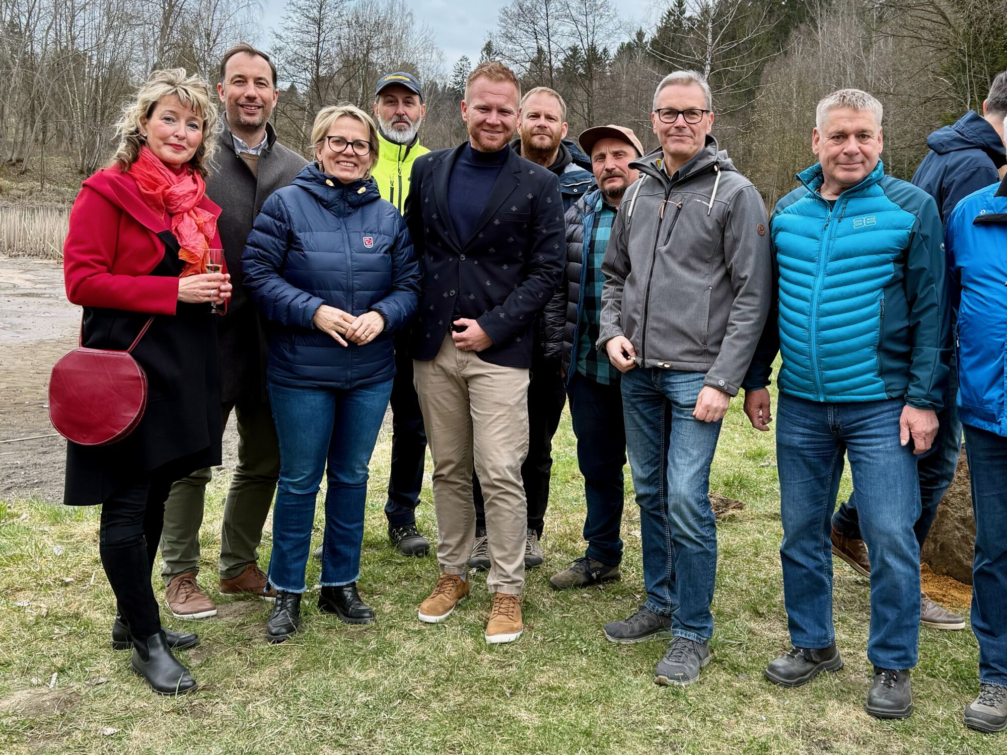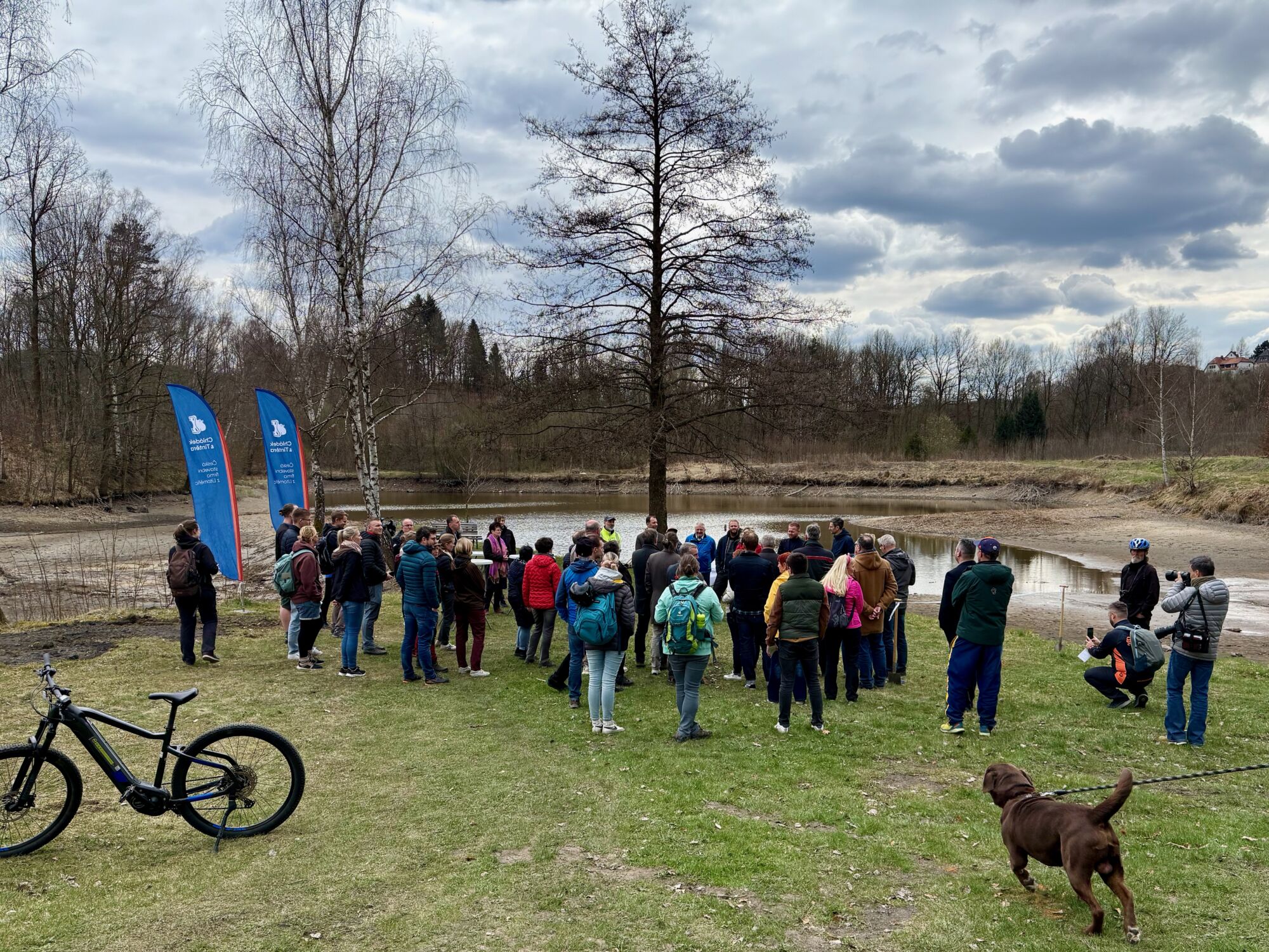 Na krásném místě mezi třemi rybníky se sešli zástupci veřejné správy i stavebních firem, za německou stranu to byla saská ministryně pro kulturu a turismus Barbara Klepscha zemský rada pro oblast Saské Švýcarsko / Východní Krušné Hory Michael Geisler, kteří přišli ze Sebnitz pěšky po trase budoucí cyklostezky společně se zástupci dalších institucí, novináři a veřejností. Za českou stranu se pak zúčastnil starosta Dolní Poustevny Robert Holec a další zástupci veřejného života v regionu. Za nás jako za realizátora stavby cyklostezky byl na místě generální ředitel naší společnosti Emil Filip a stavbyvedoucí Fridrich Herceg. V krátkých proslovech se mluvilo o přeshraniční spolupráci v tomto regionu, o důležitosti těchto projektů pro cestovní ruch i místní obyvatele.
