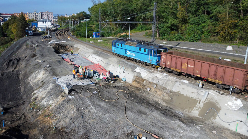 Přibližně po půl roce od dokončení první etapy sanace svahu byla v září zahájena druhá etapa, která spočívá v kompletním přebudováním železničního náspu v místech chebského zhlaví karlovarského horního nádraží.