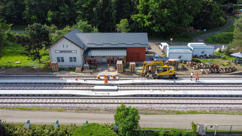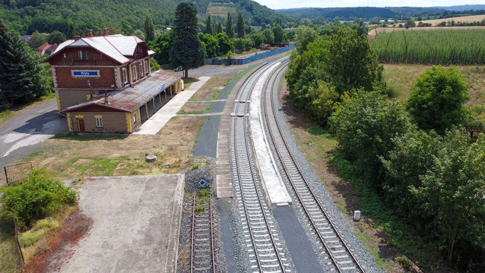Během června naši kolejáři provedli rekonstrukci kolejí a nástupišť v dopravně Kryry na Lounsku.