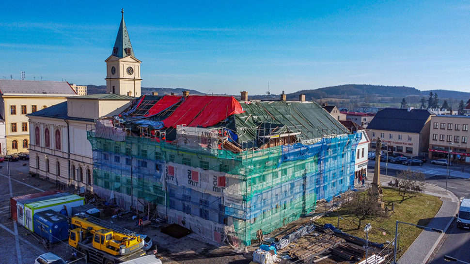 Po skoro roce trvající rozsáhlé rekonstrukci historické budovy Klubu na Masarykově náměstí v Mnichově Hradišti je patrné, jak bude objekt vypadat.