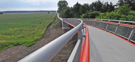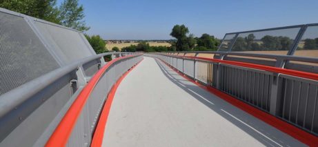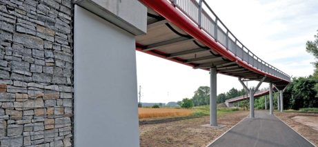 Nejsložitější částí cyklostezky je od samého začátku křížení s železniční tratí. Přibližně 112 metrů dlouhý most vyrobila společnost DT Mostárna v Prostějově a na místo jej přivezlo pět návěsů. Mostaři závodu mostních staveb společnosti Chládek & Tintěra mezitím připravili spodní stavbu mostu. Ta se skládá z osmi železobetonových patek a dvou opěr. Ocelové sloupy namontovala DT Mostárna. Šest z nich tvoří přímé sloupy s jedním ložiskem, dva pilíře se dvěma ložisky jsou ve tvaru Y. Celkem si stavba mostu vyžádala jen dvě denní a jednu noční výluku. Všechny po sedmi hodinách. Ocelová konstrukce mostu se skládá z devíti dílců různých rozpětí, které dohromady vytvořily přemostění.